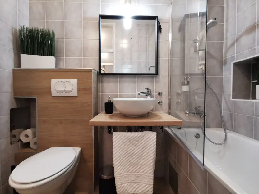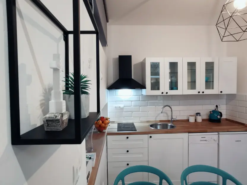 Apartman ima potpuno opremljenu kuhinju s blagovaonicom, spavaću sobu s bračnim krevetom i TV-om, sobu u kojoj je dodatni bračni krevet, kauč na razvlačenje s prostorom za sjedenje i TV-om i kupaonicu. U apartmanu ima sve što je potrebno za ugodan odmor: brzi internet, klima, perilica suđa, sušilo za kosu, perilica rublja, glačalo i daska za glačanje.
